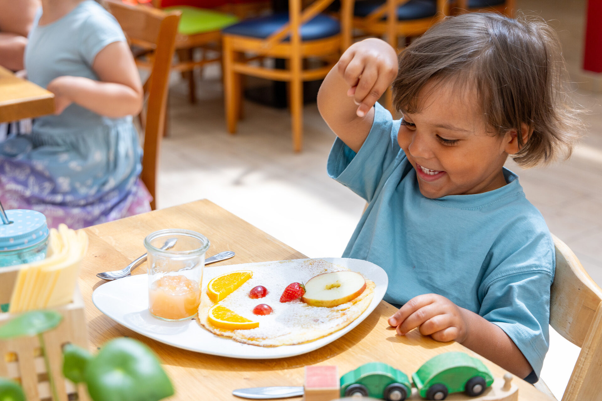 Unser weitläufiges Außengelände mit Abenteuerspielplatz ist ein echtes Paradies für kleine Entdecker und bietet viel Platz zum Austoben. Und wenn das Wetter einmal nicht mitspielt, sorgen viele Indoor-Highlights für gute Laune. Unser pädagogisch geschultes Team sorgt mit einem abwechslungsreichen Urlaubsprogramm dafür, dass jeder Tag zum Abenteuer wird.