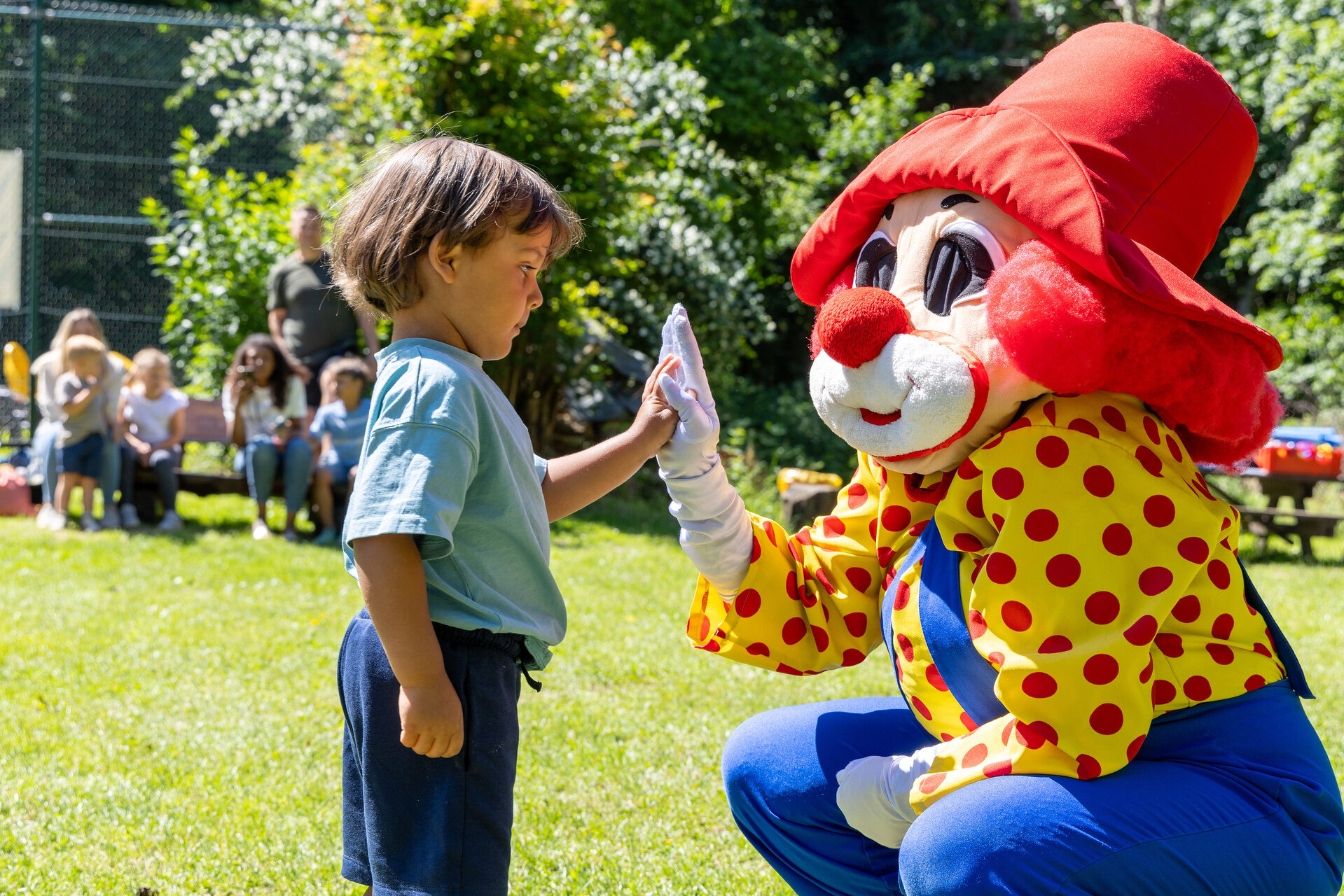 Playground with climbing frame, covered sandbox, large playground with slide, swing and trampoline, go-kart track, soccer and beach volleyball field, basketball hoop, and much more awaits you 😊